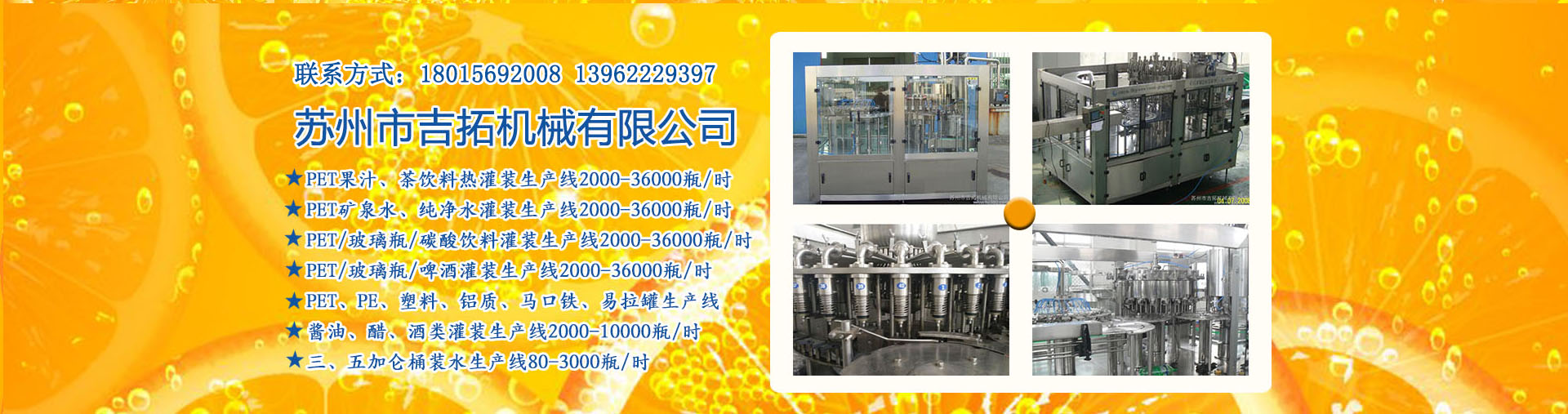 公司推薦產(chǎn)品:果汁,茶飲料灌裝設(shè)備 干法制粒機,制藥機械 大桶灌裝設(shè)備 瓶裝水生產(chǎn)設(shè)備 三合一灌裝機組 水處理生產(chǎn)線 飲料混合機